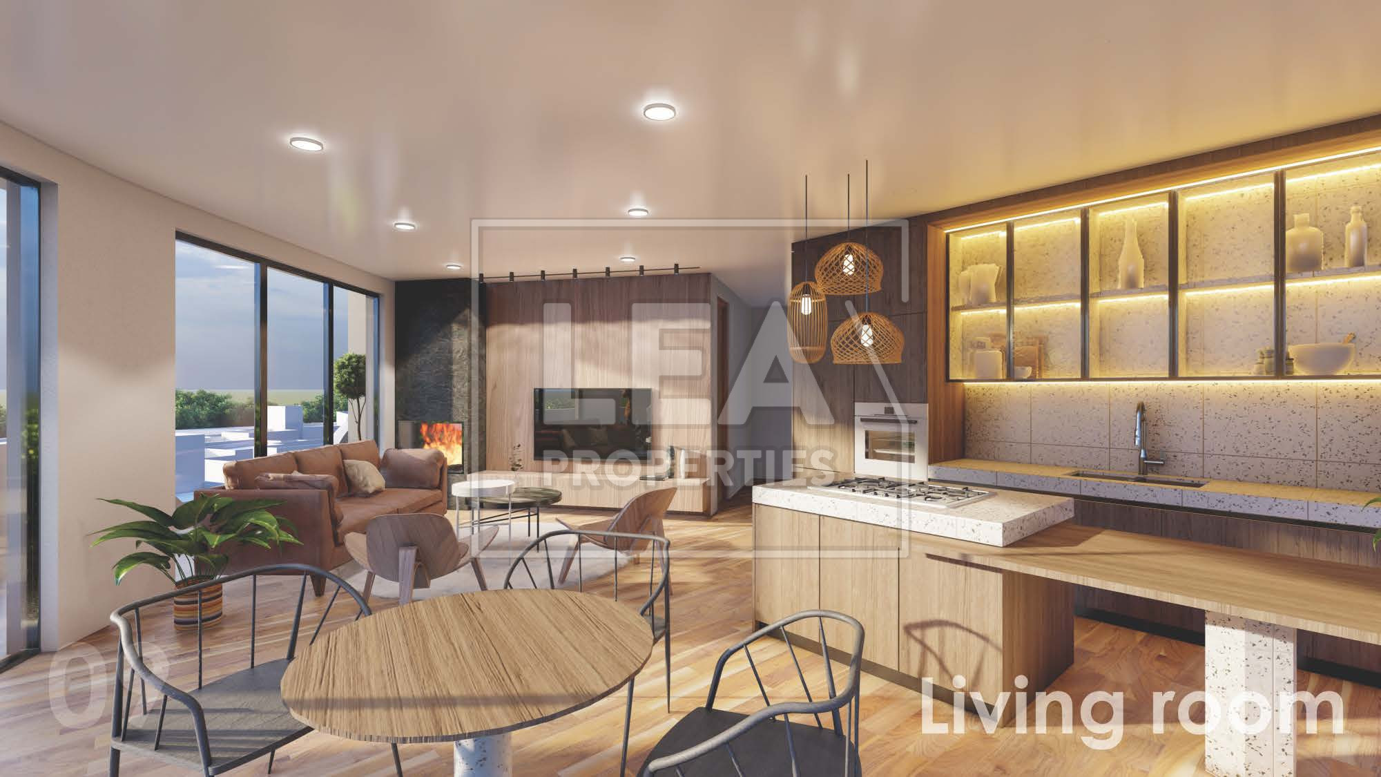 Open-plan living, kitchen & dining area