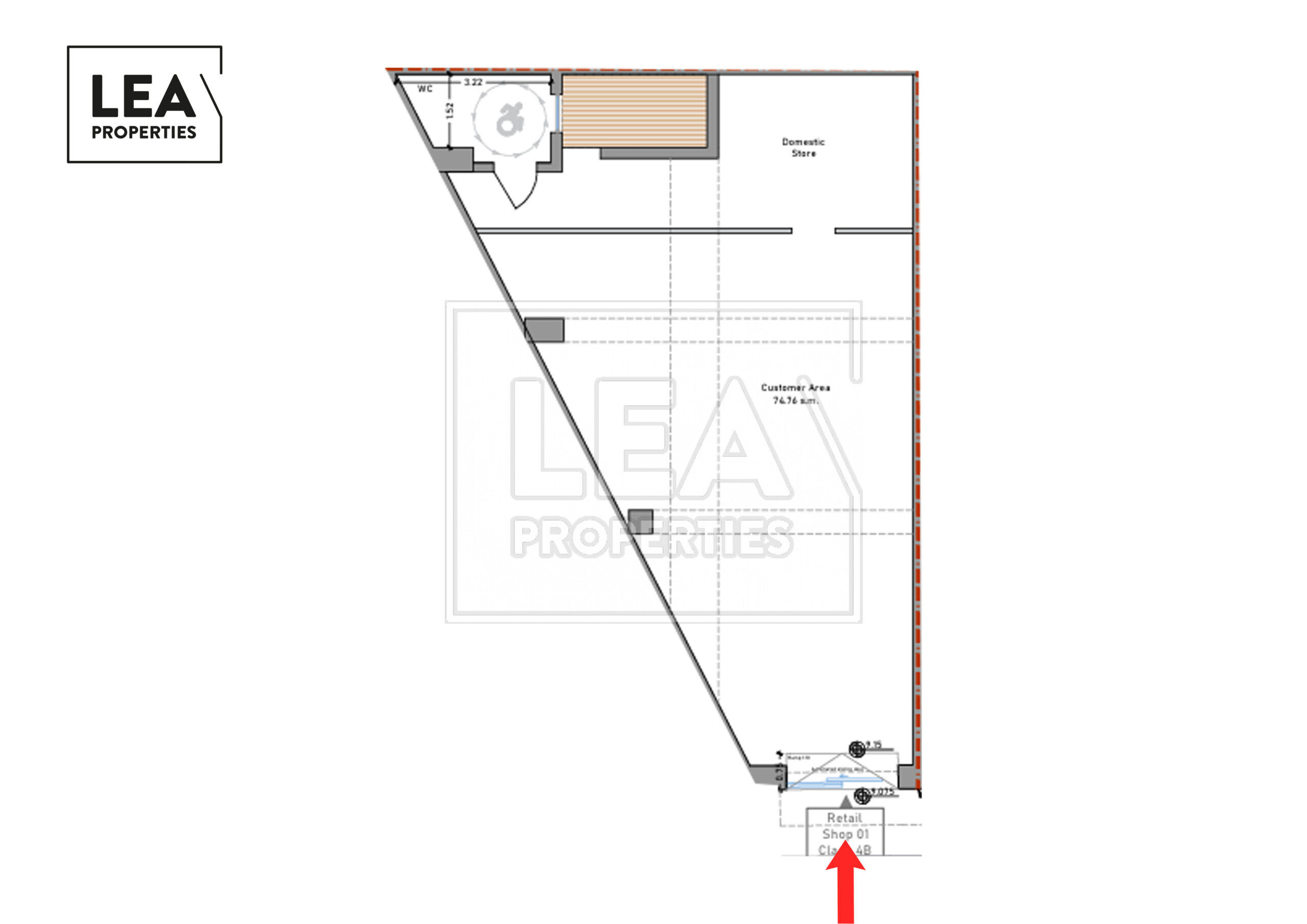 The property includes a bathroom and a domestic store at the back, providing functional space for operations or storage. Fully wheelchair accessible, it ensures easy access for staff and customers alike. Its strategic location guarantees high visibility and foot traffic, perfect for retail, office, or other commercial ventures.