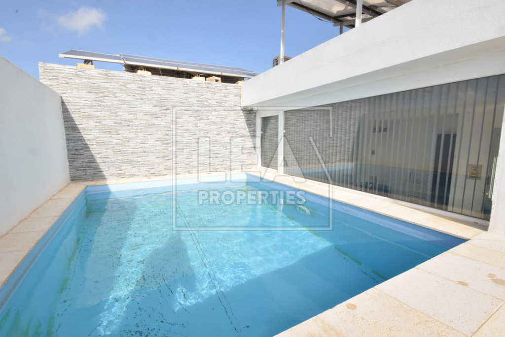 On the upper floor, you will find a washroom that can be converted into a fourth bedroom, which opens onto a half-roof terrace with a pool. This freehold property will be sold furnished, including 10 solar panels and a stove fireplace with central heating.