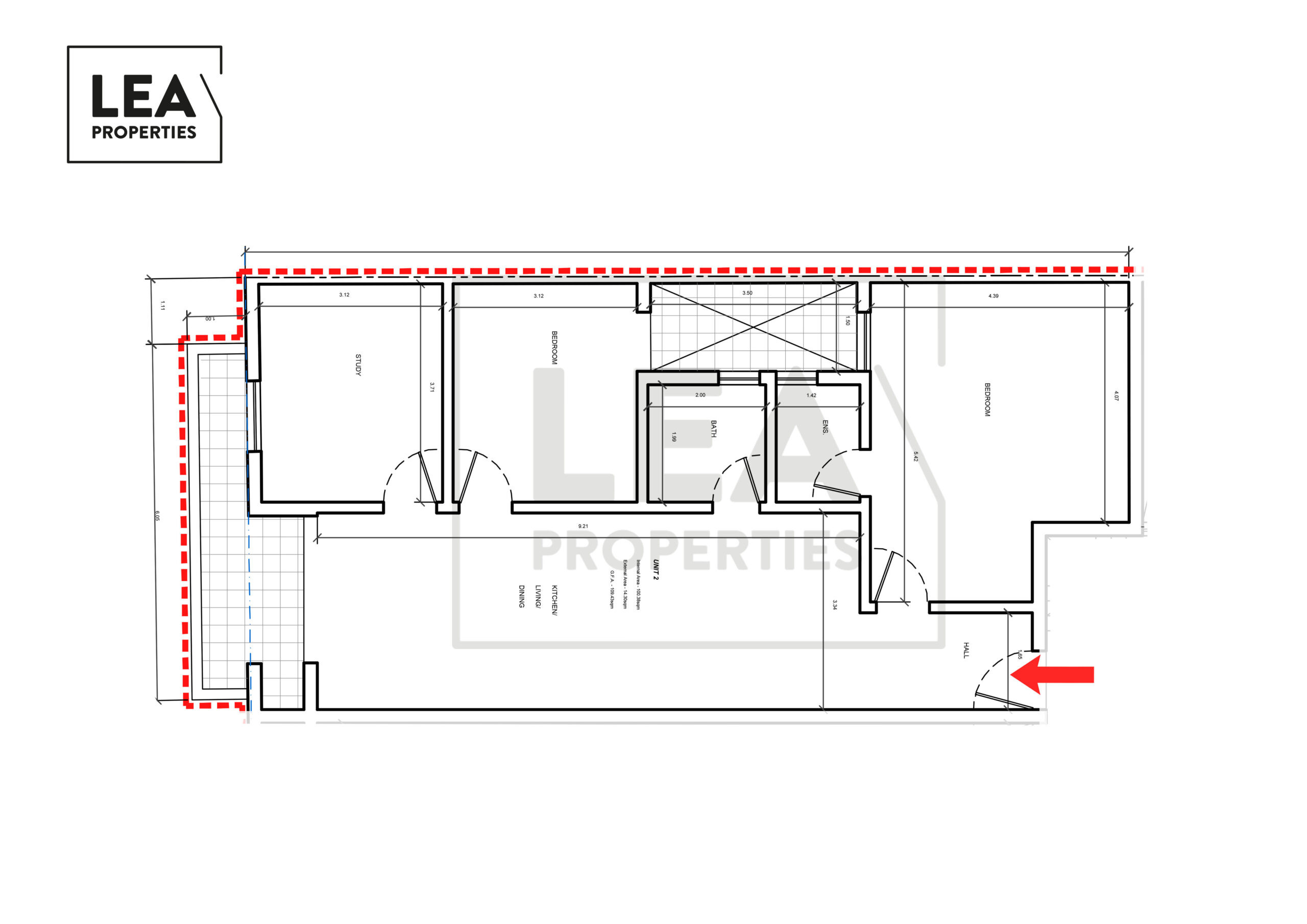 With an internal area of approximately 100.38 sqm and an additional 14.3 sqm of outdoor space, this apartment offers a perfect balance of comfort, functionality, and modern living.
